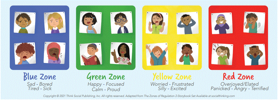 The Zones of Regulation is the original framework and curriculum (Kuypers, 2011) that develops awareness of feelings, energy and alertness levels while exploring a variety of tools and strategies for regulation, prosocial skills, self-care, and overall wellness. This curriculum provides us an easy way to think and talk about how we feel on the inside and sort these feelings into four colored Zones, all of which are expected in life. Once we understand our feelings and zones, we can learn to use tools/strategies to manage our different Zones in order to meet goals like doing schoolwork or other tasks, managing big feelings, and healthy relationships with others. The simple, common language and visual structure of The Zones of Regulation helps make the complex skill of regulation more concrete for learners and those who support them.